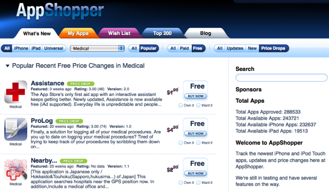Nel caso in cui non ve ne siate ancora accorti, Apple ha provveduto proprio di recente a rimuovere una della applicazioni più popolari che erano presenti sul suo Apple Store. AppShopper, questa semplice e gratuita utility dava l’opportunità di navigare nell’Apple Store attraverso una semplice e pratica categorizzazione dei contenuti. Grazie a questa app, era possibile infatti scegliere di controllare solo le applicazioni nuove, solo le più popolari, potevate creare anche una lista dei desideri, di quello che avreste voluto magari acquistare nello store.