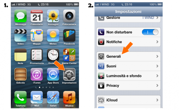 1. Prima di tutto per usare l’iPhone come modem o come router wi-fi, devi essere sicuro che il tuo operatore ( Tim, Wind, Vodafone, Tre ) non usa condizioni economiche speciali e tariffe dopo che hai superato il limite. Ti assicuro che il traffico disponibile è sempre poco. Dopo che hai verificato queste dettagli, possiamo finalmente iniziare a creare la rete wi-fi. Apri Impostazioni.