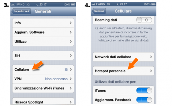 - Il tuo cellulare diventa un modem o un router wi-fi;